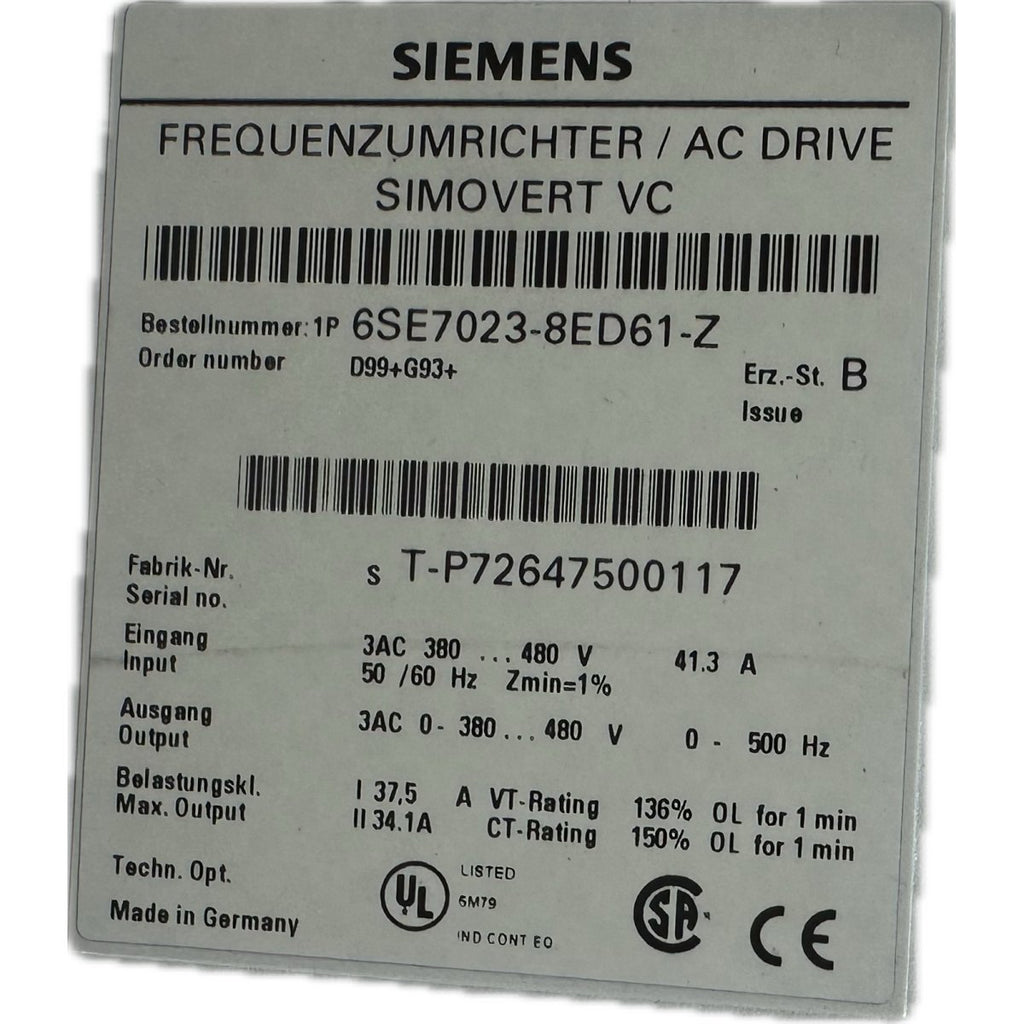 AJ706 Frequency converter KEB 07.F4.S2C-1220/ with mains filter cover is missing