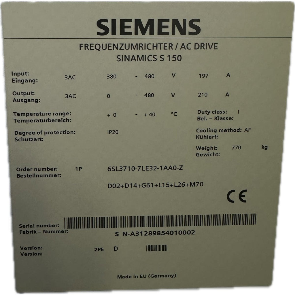 AJ77 frequency converter AC/AC Siemens 6SL3710-7LE32-1AA0-Z 110KW 770 kg (No shipping, pickup only)