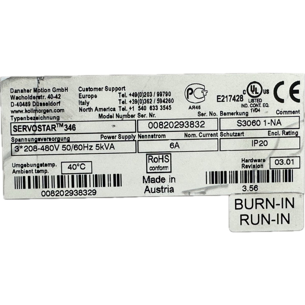 .FJ59 Servo Drive Danaher Motion Servostar 346 S30601-NA V03.01 ohne Lüfter