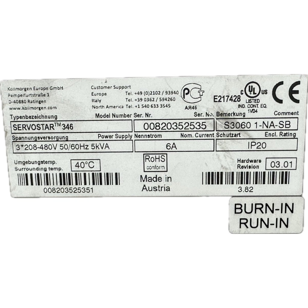 .FJ60 Servo Drive Kollomorgen Servostar 346 S3060 1-NA-SB V03