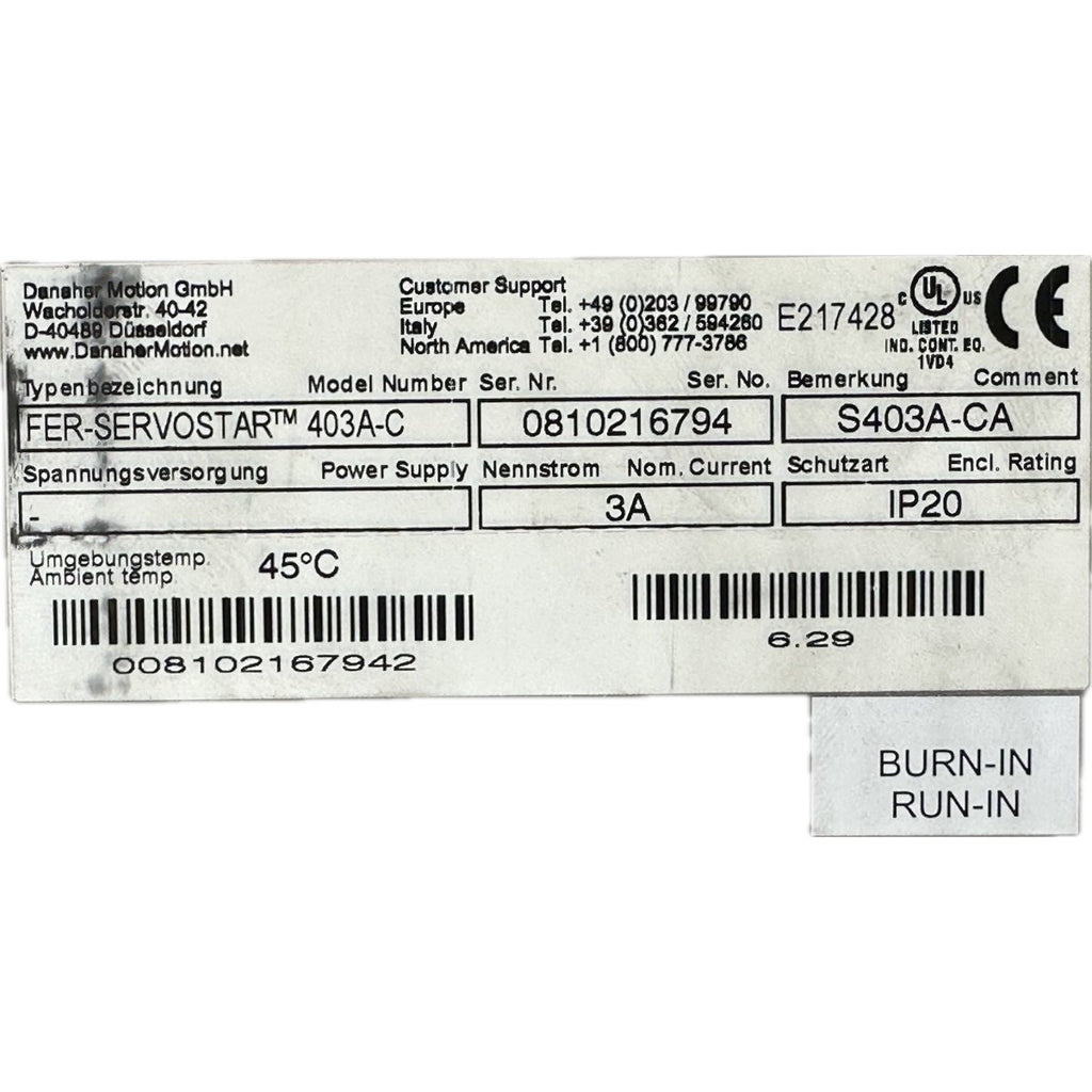 .FJ65 Servo Drive Kollomorgen Fer-Servostar 403A-C S403A-CA