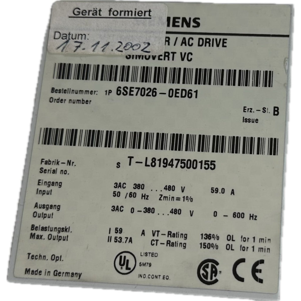 .FJ7 Frequenzumrichter Siemens 6SE7026-0ED61