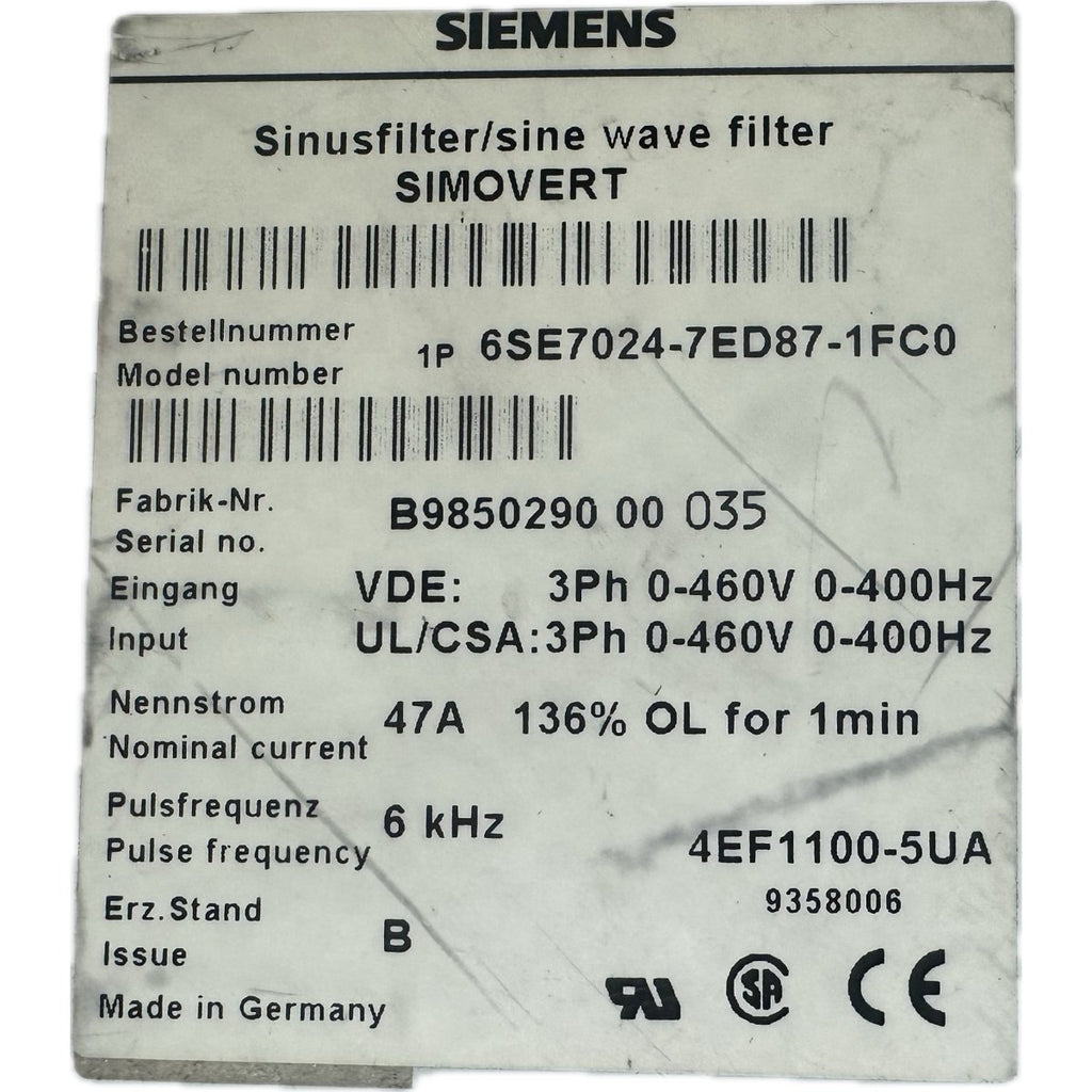 RJ16 Sinusfilter Siemens 6SE7024-7ED87-1FC0